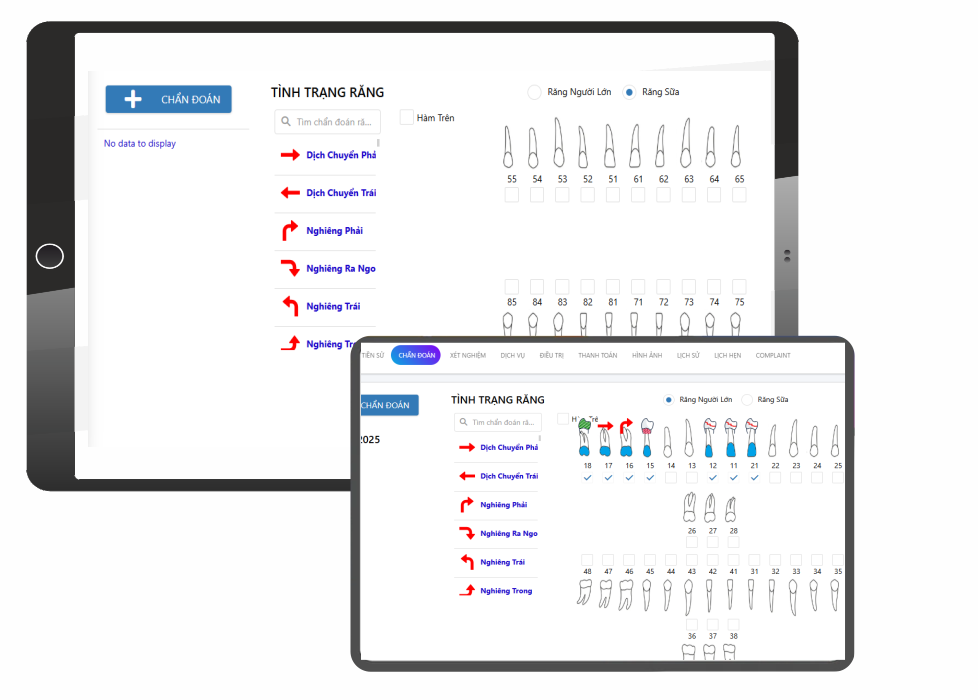 AI-CLINIC xây dựng phần mềm quản lý nha khoa với chức năng Chart teeth giúp Bác sĩ chẩn đoán bệnh lý, đưa ra phương án điều trị thích hợp.