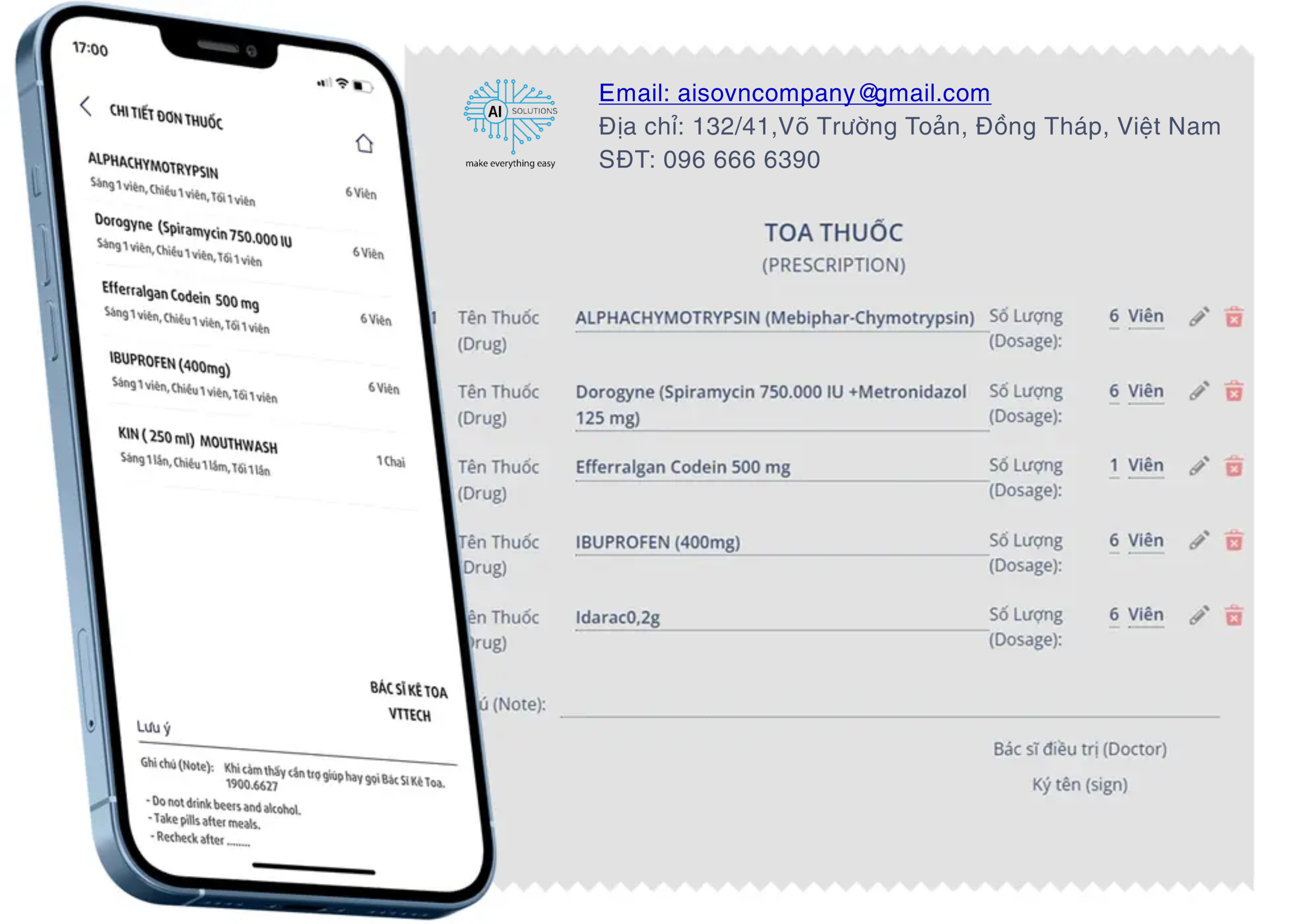 Hệ thống AI-CLINIC cho phép bạn khởi tạo, cấu hình trước các mẫu toa thuốc trong hệ thống danh mục giúp việc lên đơn và in đơn thuốc cho khách hàng nhanh chóng chỉ bằng một thao tác.